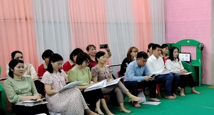 Tham gia báo cáo giải pháp có 2 giáo viên phụ trách 2 hoạt động, một hoạt động phát triển nhận thức với hình thức trải nghiệm"Bé chơi với chai nhựa" lứa tuổi Nhà trẻ 24-36 tháng và một hoạt động giáo dục steam"Sự kỳ diệu của nam châm" lứa tuổi 4-5 tuổi.